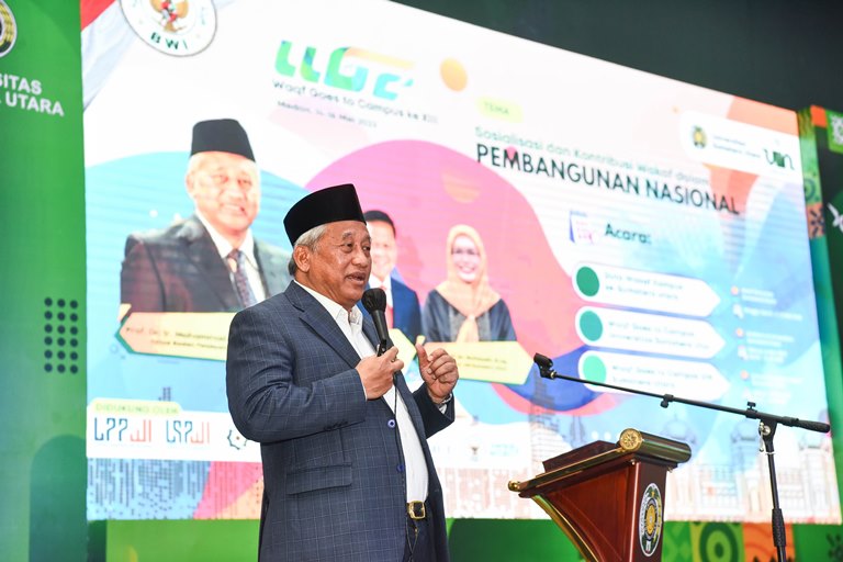 Hal itu dipesankan Ketua BWI, Muhammad Nuh dalam acara BWI Goes to Campus di Auditorium USU, Medan. PTN sebagai lembaga pendidikan berpotensi mengumpulkan dan mengelola wakaf bersama BWI yang peruntukannya dapat digunakan dalam peningkatan kualitas pendidikan ke depan.
